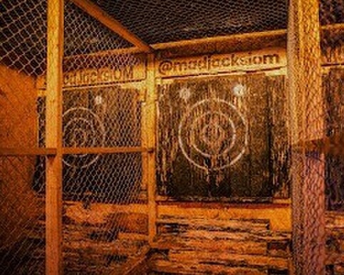 Mad JacksAxe throwing and vintage gaming, with a bar for the adults. Kids throw plastic axes.