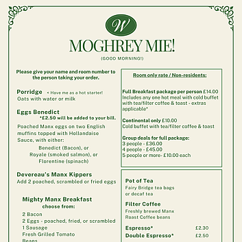 Please inform us of any special dietary requirements when making your booking. We offer options for coeliac/gluten intolerance, dairy-free, vegan, vegetarian, and more. Just give us advance notice, and we'll ensure everything is perfectly catered for you.