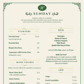 Sunday Roast: 12-3pm or 5.30pm - Children eat FREE*! *1 child >12yrs to 1 paying adult.
