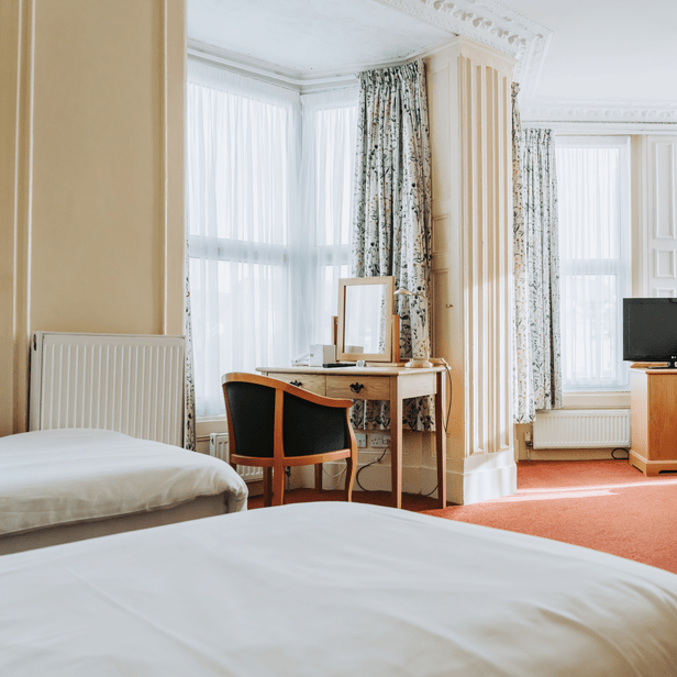 Explore our well-appointed rooms showcased below. Each room features an en suite bathroom, and select rooms offer the flexibility of double or twin beds. All our accommodations include High-Speed WiFi and Digital TV for your convenience. While we are comfortably nestled just off the bustling Douglas Promenade, numerous rooms provide limited sea views. Additionally, we offer several tranquil rooms situated at the rear of the hotel, where guests can still enjoy a sunny aspect.